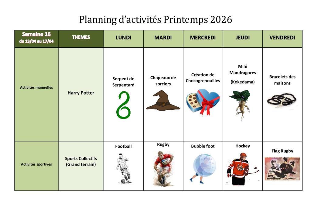Planning printemps 2025