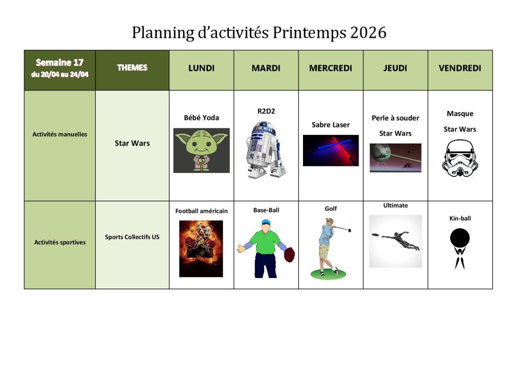 Plannings des activités