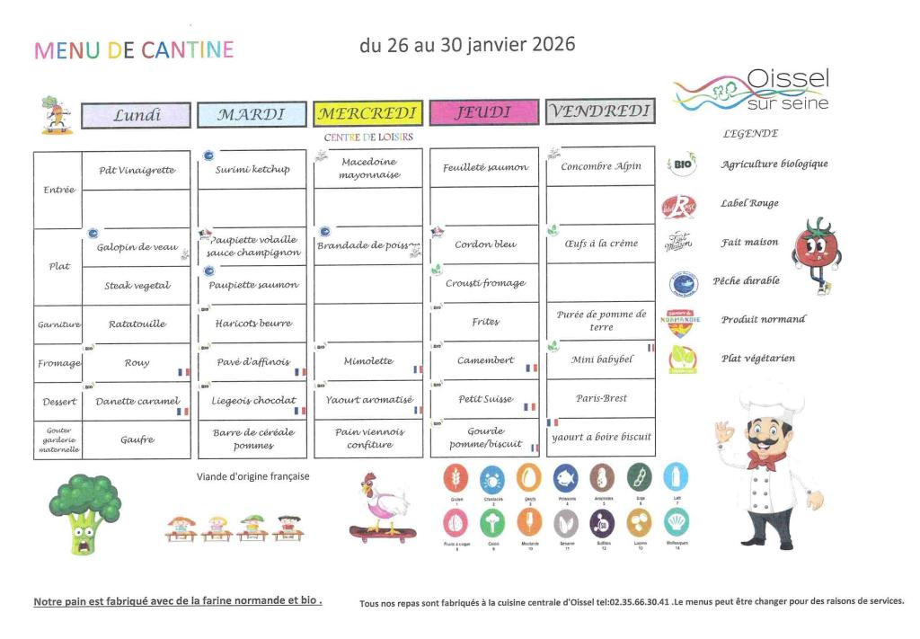 cantine du 26 au 30 janvier 2026