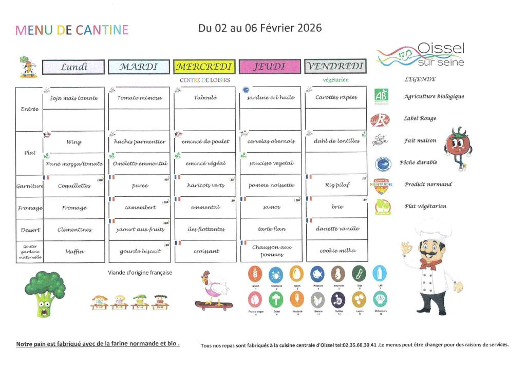 cantine du 02 au 06 février 2026