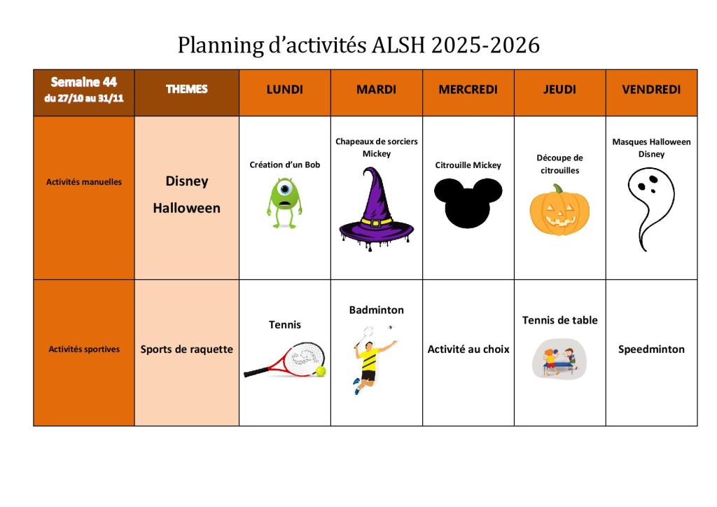 Plannings des activités