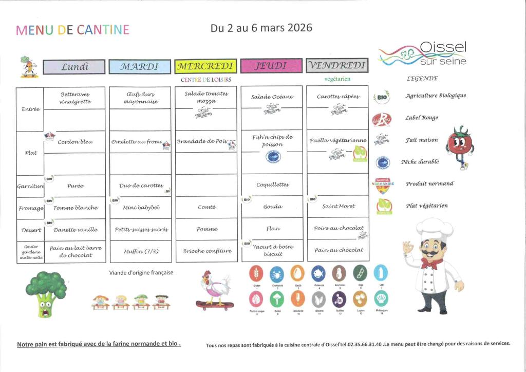 cantine du 02 au 06 mars 2026