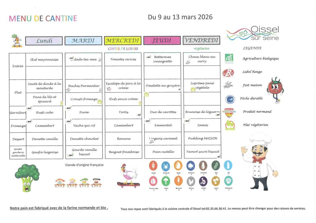 cantine du 09 au 13 mars 2026