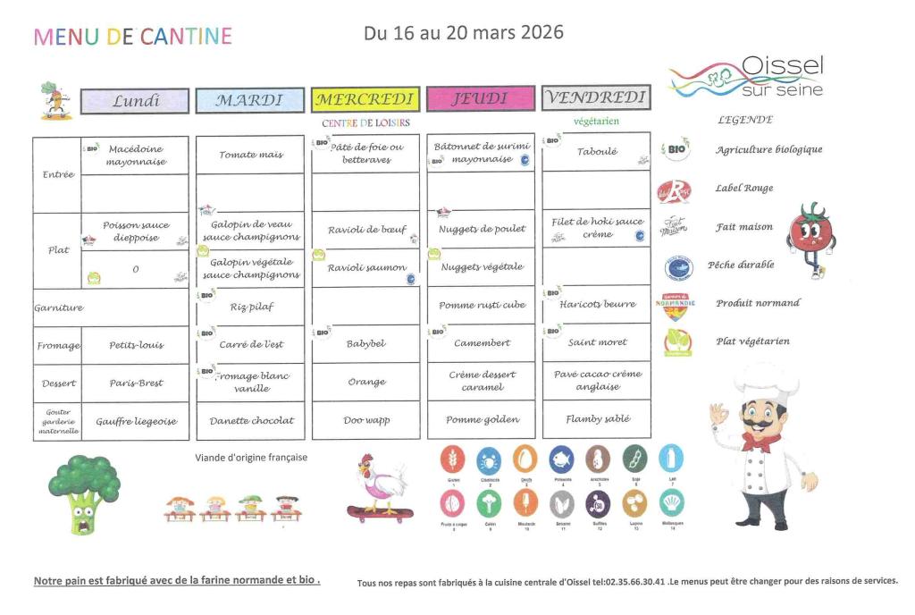 cantine du 16 au 20 mars 2026